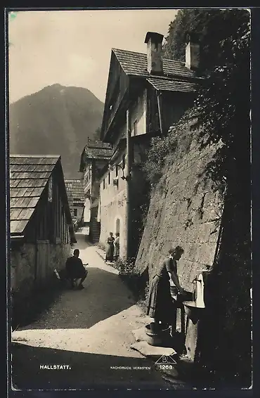 AK Hallstatt, Ortspartie am Wandbrunnen