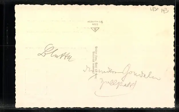 Personenbezogene Daten auf der Rückseite der Karte wurden durch blauen Textmarker unkenntlich gemacht. Die blauen Stellen sind auf die Vorderseite durchgeweicht und wirken sich negativ auf das Postkartenfoto aus