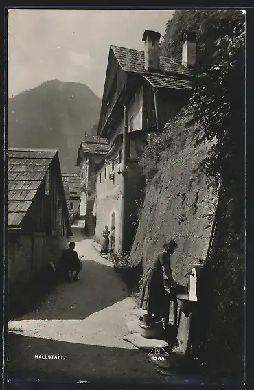 AK Hallstatt, Strassenpartie mit Anwohnern