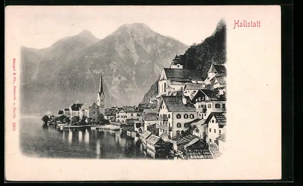 AK Hallstatt, Teilansicht mit Bergblick