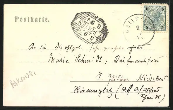 alte Ansichtskarte, gelaufen 1903, rückseitig Oberflächenschaden, guter Zustand