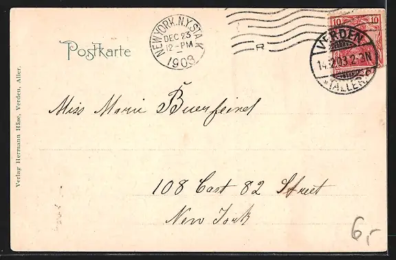 alte Ansichtskarte, gelaufen 1903, Eckknick unten rechts, guter Zustand