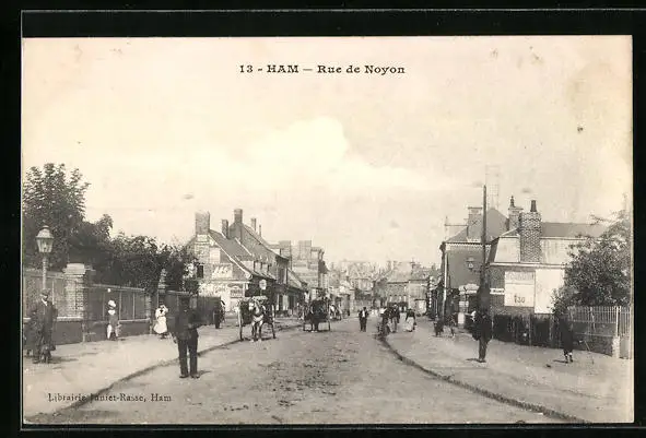 AK Ham, Rue de Noyon, Strassenpartie