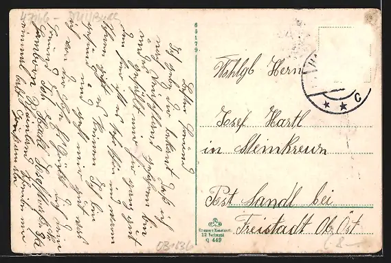 alte Ansichtskarte, gelaufen, Briefmarke entfernt, guter Zustand