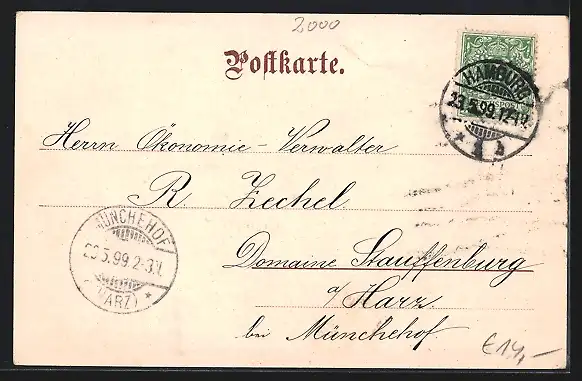 alte Ansichtskarte, gelaufen 1899, guter Zustand