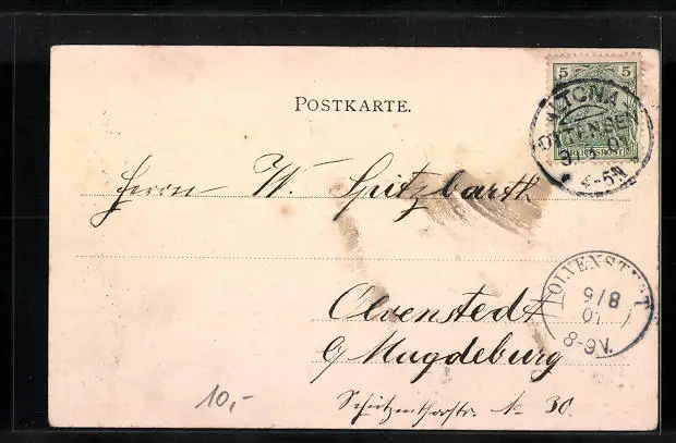 alte Ansichtskarte, gelaufen 1901, Eckknick re. unten, guter Zustand