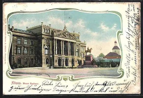 AK Hamburg-Altona, Neues Rathaus mit Reiterdenkmal