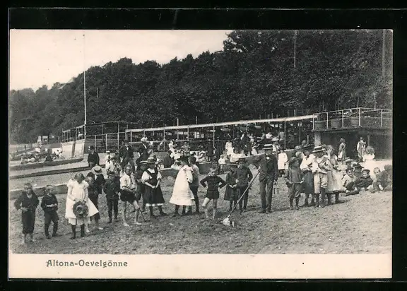 AK Hamburg-Altona-Oevelgönne, Standpartie mit Kindern