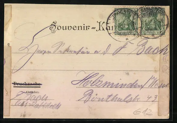 alte Ansichtskarte, gelaufen, rückseitig Klebe- und Papierreste, Einriss oben mittig, guter Zustand