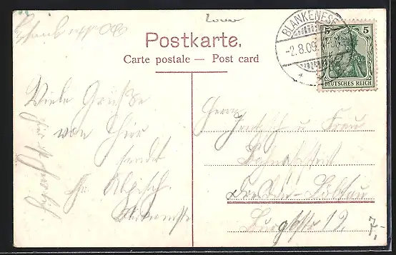 alte Ansichtskarte, gelaufen 1909, guter Zustand