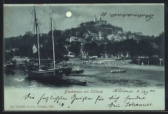 AK Hamburg-Blankenese, Segelboot am Süllberg