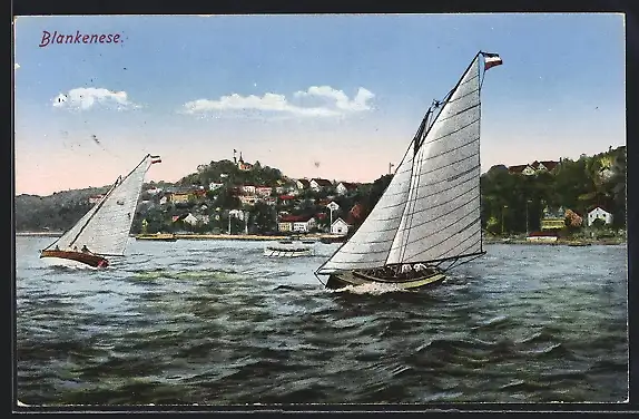 AK Hamburg-Blankenese, Segelboote auf dem Wasser