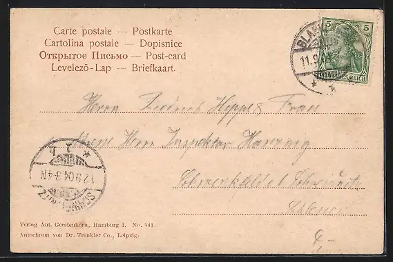 alte Ansichtskarte, gelaufen 1904, guter Zustand