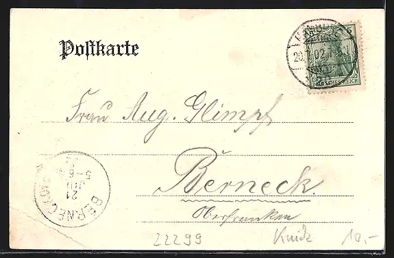 alte Ansichtskarte, gelaufen 1902, Eckknick re. unten, guter Zustand
