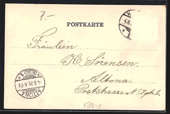 alte Ansichtskarte, gelaufen 1901, Briefmarke entfernt, rückseitig Oberflächenschaden, guter Zustand