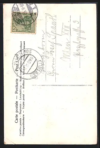 alte Ansichtskarte, gelaufen 1905, Eckknick unten re., Stempelspur, guter Zustand