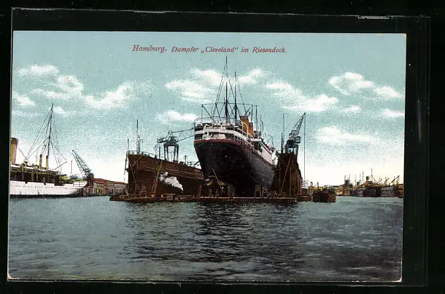 AK Hamburg, Dampfer Cleveland am Riesendock