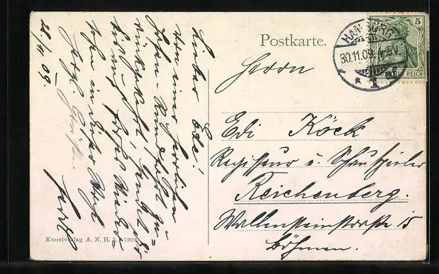 alte Ansichtskarte, gelaufen 1909, guter Zustand