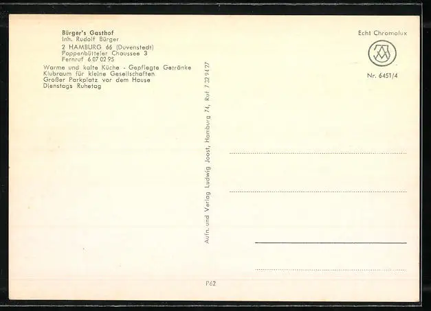 AK Hamburg-Duvenstedt, Bürger`s Gasthof, Poppenbütteler Chaussee 3