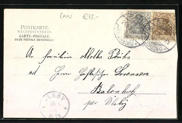 alte Ansichtskarte, gelaufen 1905, abgeschnittene Kante li., Einriss li. und li. unten, Eckknick re. oben, guter Zustand