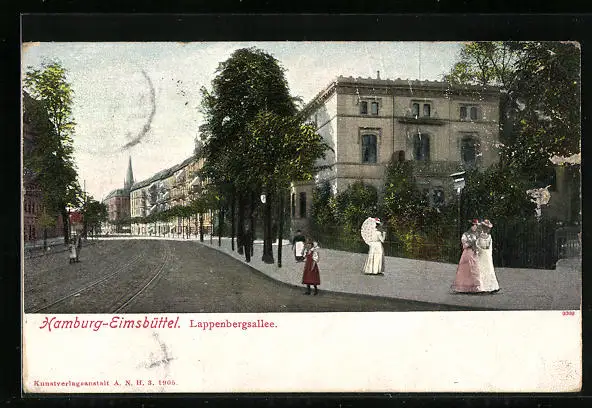 AK Hamburg-Eimsbüttel, Lappenbergsallee mit Passanten