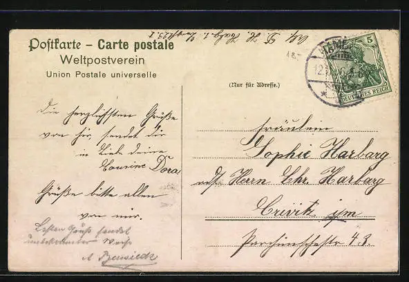 alte Ansichtskarte, gelaufen 1906, Stempelspur, guter Zustand