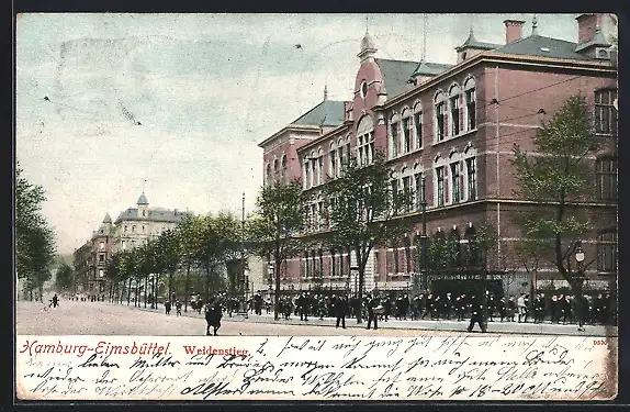 AK Hamburg-Eimsbüttel, Weidenstieg mit Passanten