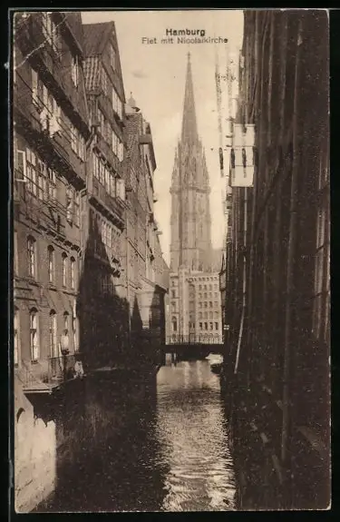 AK Hamburg, Flet mit Nicolaikirche