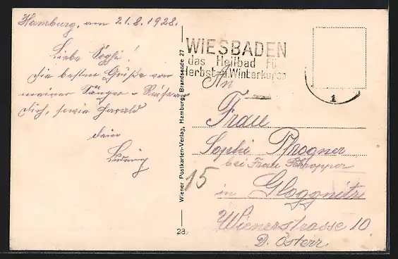 alte Ansichtskarte, gelaufen, Briefmarke entfernt, guter Zustand