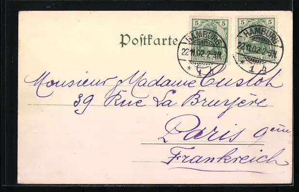 alte Ansichtskarte, gelaufen 1902, guter Zustand