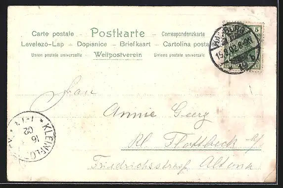 alte Ansichtskarte, gelaufen 1902, Eckknick li. unten, guter Zustand