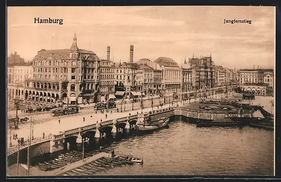 AK Hamburg, Jungfernstieg mit Strassenbahn