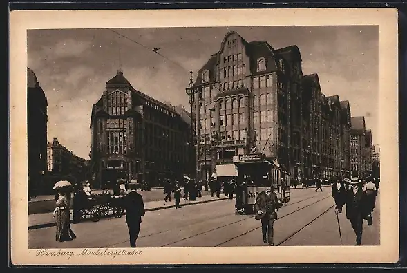 AK Hamburg, Mönkebergstrasse, Strassenbahn