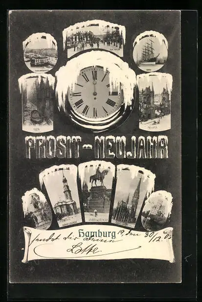 AK Hamburg, Neujahrsgrüsse mit Michaeliskirche und Hafen