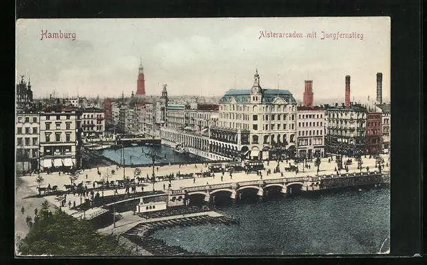AK Hamburg-Neustadt, Alsterarcaden mit Jungfernstieg