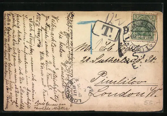alte Ansichtskarte, gelaufen 1912, Stempelspur, guter Zustand