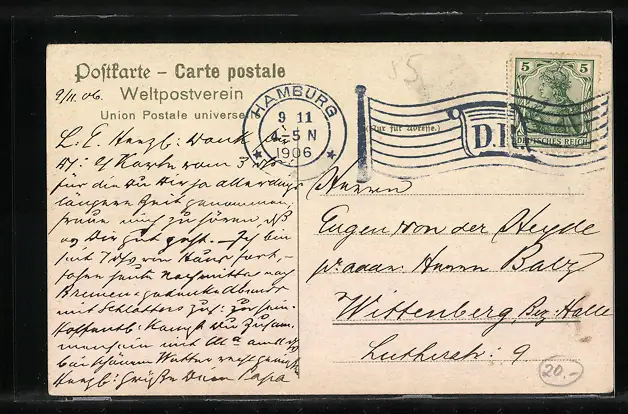 alte Ansichtskarte, gelaufen 1906, guter Zustand