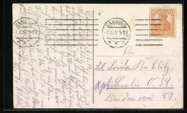 gelaufen 1917, Eckknicke li. unten und re. oben, guter Zustand
