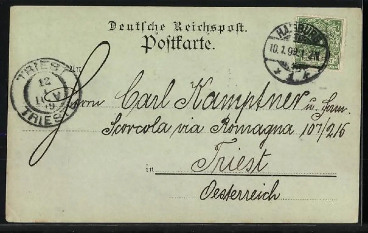 alte Ansichtskarte, gelaufen 1899, Stempelspur, guter Zustand