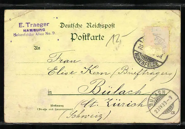alte Ansichtskarte, gelaufen 1899, Briefmarke entfernt, rückseitig Oberflächenschaden, Eckknicke links u. rechts, guter Zustand