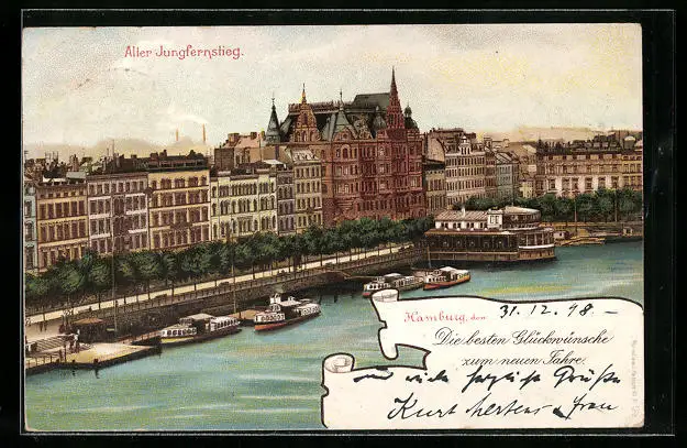 AK Hamburg-Neustadt, Alter Jungfernstieg mit Booten