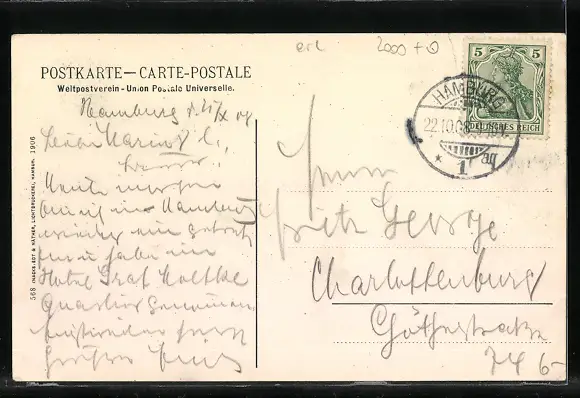alte Ansichtskarte, gelaufen 1908, guter Zustand