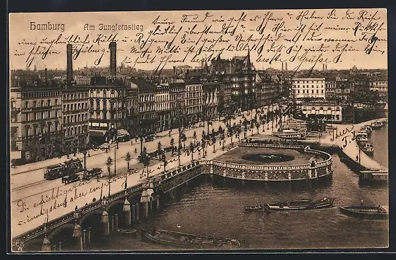 AK Hamburg-Neustadt, Am Jungfernstieg mit Strassenbahn
