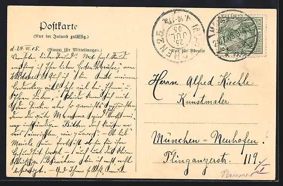 alte Ansichtskarte, gelaufen 1905, guter Zustand