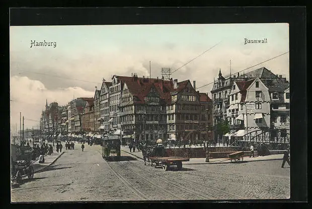 AK Hamburg-Neustadt, Baumwall mit Strassenbahn