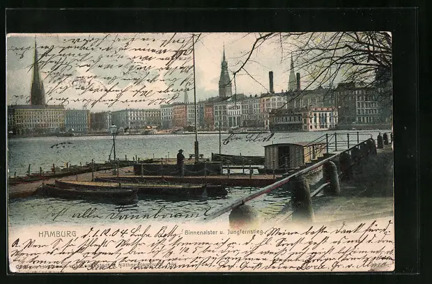 AK Hamburg-Neustadt, Binnenalster und Jungfernstieg