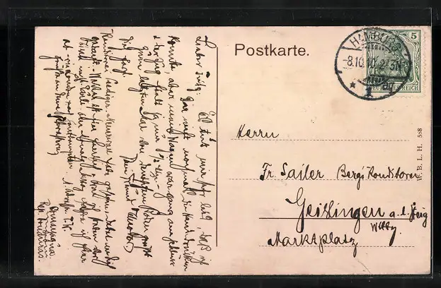 alte Ansichtskarte, gelaufen 1910, Stempelspur, guter Zustand