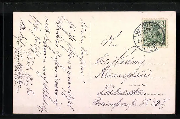 alte Ansichtskarte, gelaufen 1912, Stempelspur, guter Zustand