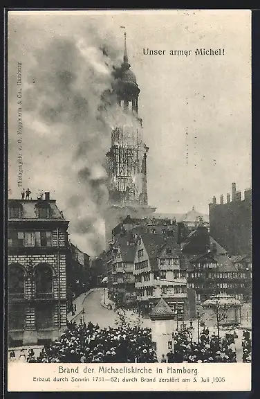 AK Hamburg-Neustadt, Brand der Michaeliskirche
