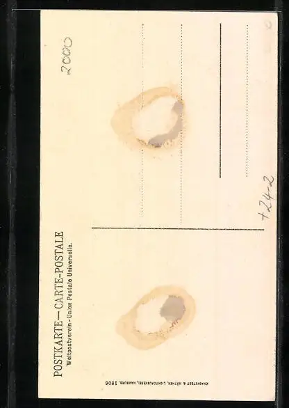 alte Ansichtskarte, ungelaufen, rückseitig Klebe- und Papierreste, rückseitig Oberflächenschaden, guter Zustand